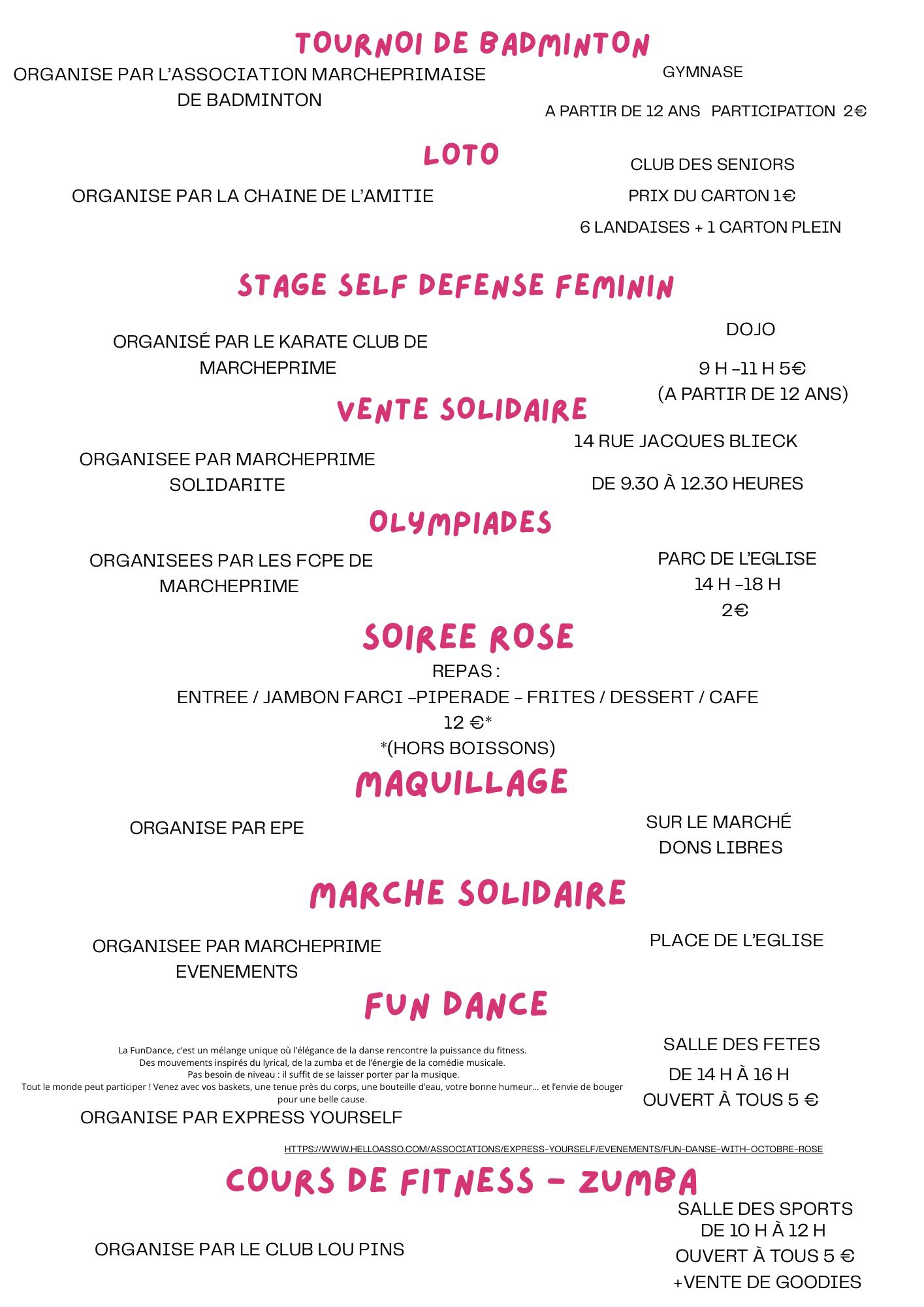 Dimanche 12 octobre, 14 à 18h, salle des fêtes FUN DANCE par Express Yourself Alex Galvani EY / Ouvert à tous 5 € Inscriptions sur www.helloasso.com/ associations/express-yourself/evenements/fun-danse-with-octobre-rose