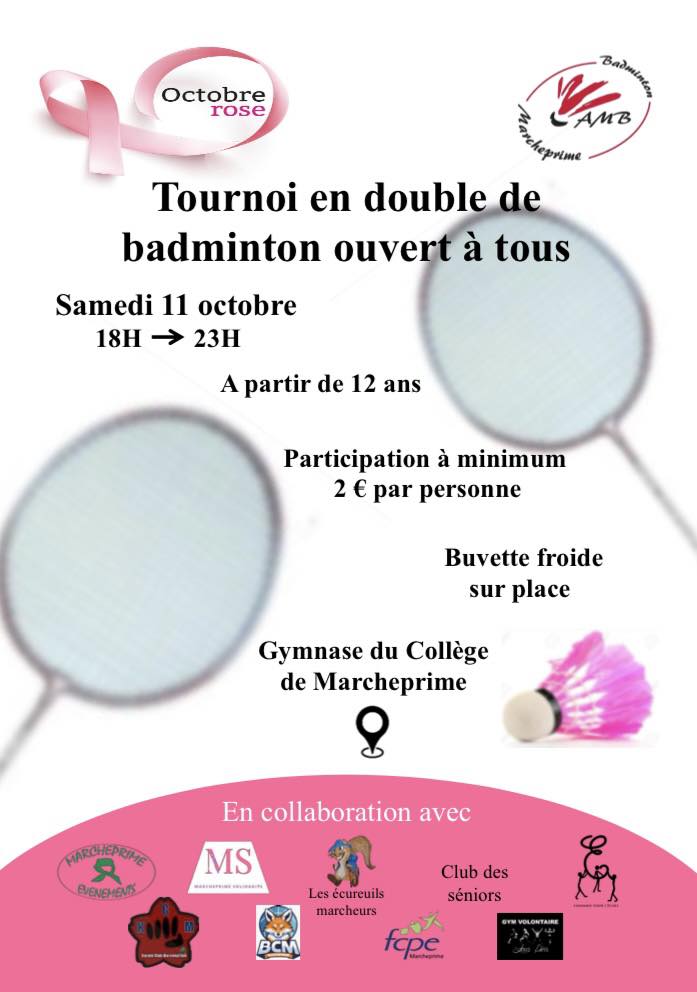 Samedi 11 octobre, 9h30 à 12h30, local de Marcheprime Solidarité JOURNEE DE VENTE au profit d’Octobre Rose par Marcheprime Solidarité