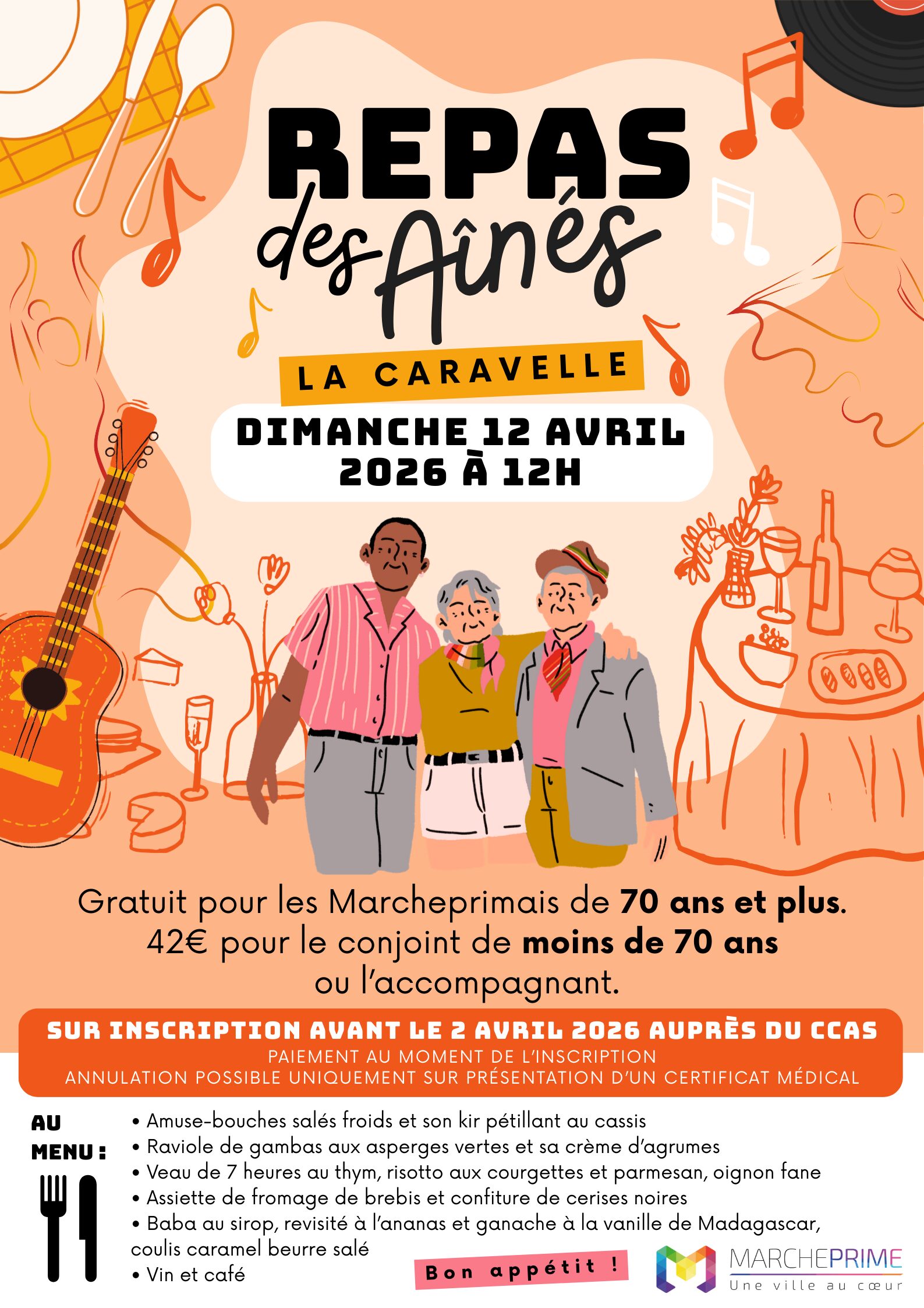 Dimanche 12 avril, partagez un moment festif et convivial lors du repas des aînés organisé par la Ville. Les inscriptions sont ouvertes !