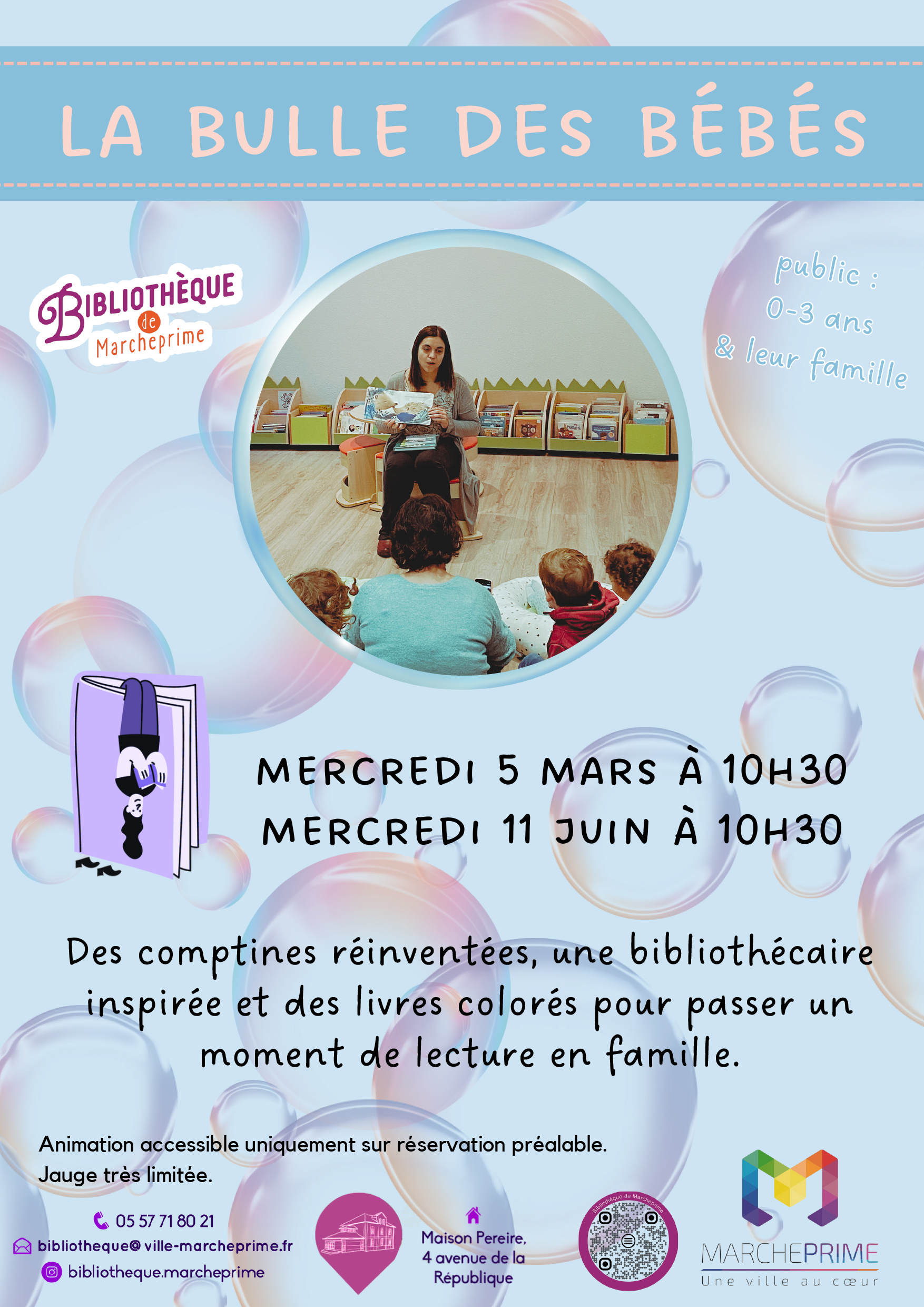 Inscriptions et renseignements : 05 57 71 80 21 ou bibliotheque@ville-marcheprime.fr