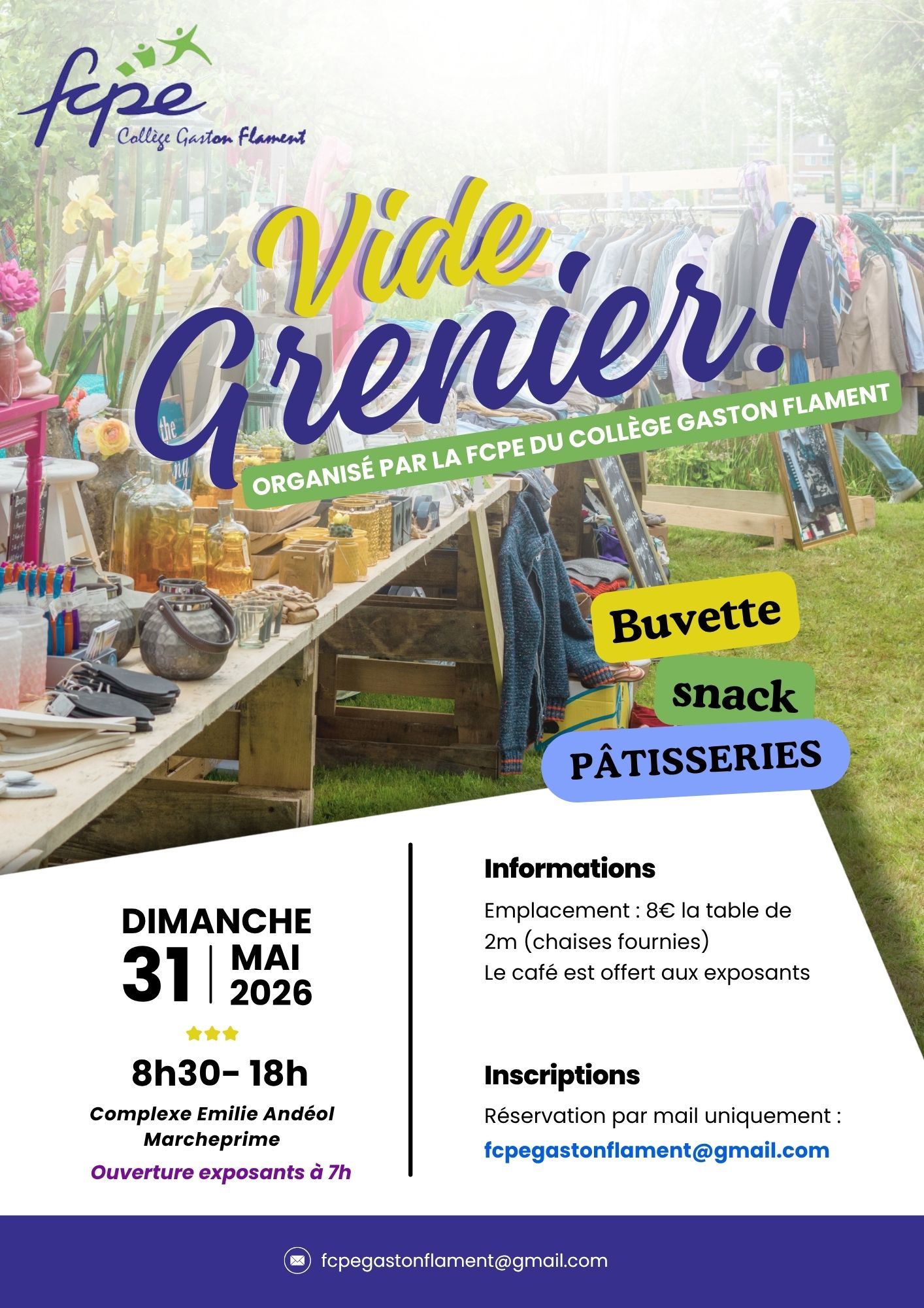 Venez chiner ou vendre les objets qui ne vous servent plus au vide-greniers organisé par la FCPE du collège Gaston Flament ! 🎠👢🎲
