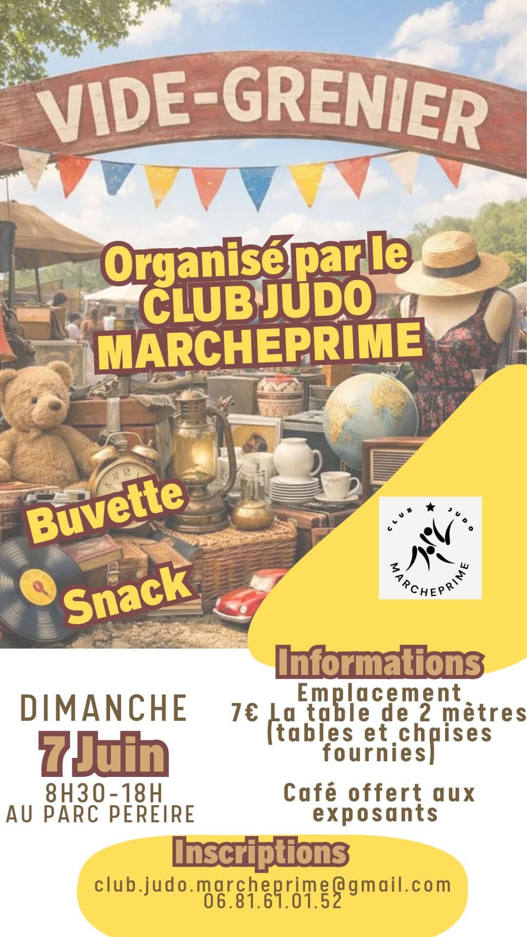 Dimanche 7 juin, venez chiner ou vendre les objets qui ne vous servent plus au vide-greniers organisé par le Club de Judo de Marcheprime !